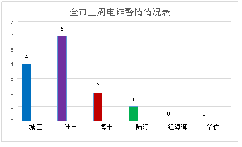 9月2日至9月8日,全市共接電詐警情13起,其中城區(qū)4起、陸豐6起、海豐2起和陸河1起。上周全市電詐警情類(lèi)型主要是刷單返利類(lèi),冒充公檢法及政府機(jī)關(guān)類(lèi),貸款、代辦信用卡類(lèi)和虛假網(wǎng)絡(luò)投資理財(cái)類(lèi),分別為4起、3起、2起和2起。