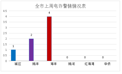 上周電詐警情中,城區(qū)警情發(fā)生在東涌鎮(zhèn);海豐警情發(fā)生在城東鎮(zhèn)和附城鎮(zhèn);陸豐警情發(fā)生在東海街道和碣石鎮(zhèn)。電詐警情發(fā)生較多的鎮(zhèn)街是海豐城東鎮(zhèn),為3起。