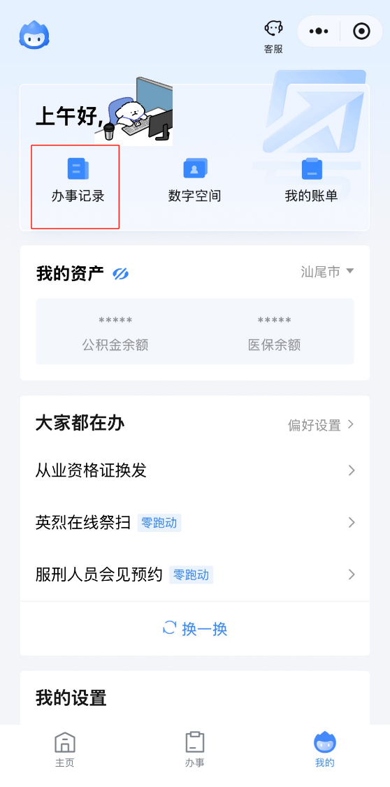 再次進入 “粵省事”微信小程序,點擊【我的】-【辦事記錄】就可以查詢啦!