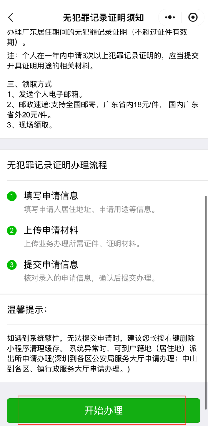注意:個人在一年內申請3次以上無犯罪記錄證明的,應當提交開具證明用途的相關材料。