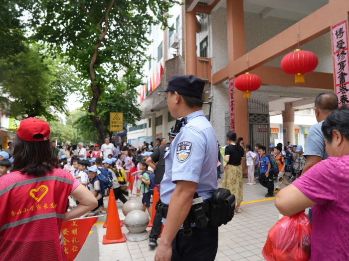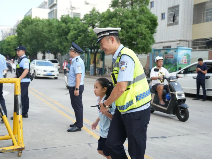 “小朋友來,跟著警察叔叔走斑馬線過馬路?!薄案魑患议L,請(qǐng)按劃定位置停好車,不然會(huì)堵塞交通?!痹诔菂^(qū)實(shí)驗(yàn)小學(xué)周邊路段,民警正有條不紊地維持交通秩序、疏導(dǎo)車輛,協(xié)助學(xué)校工作人員引導(dǎo)學(xué)生們有序入校,并對(duì)違規(guī)停放及橫穿馬路車輛進(jìn)行引導(dǎo)。