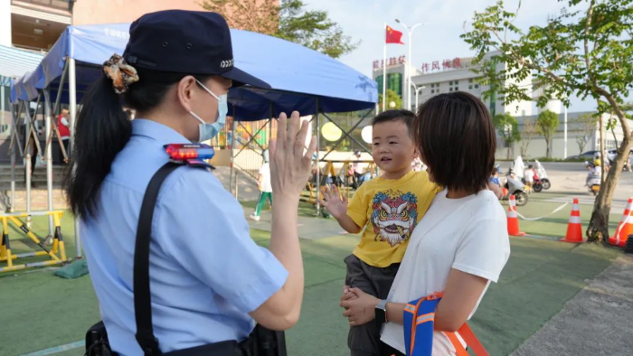 汕尾的清晨,秋日的涼風(fēng)開始吹起,校園門口依舊車水馬龍,來往學(xué)生、家長絡(luò)繹不絕,民警們一邊維護(hù)現(xiàn)場(chǎng)秩序,一邊疏導(dǎo)車輛,傾力守護(hù)校園周邊治安、交通秩序,以一抹抹藏青藍(lán)撐起校園的“安全傘”。