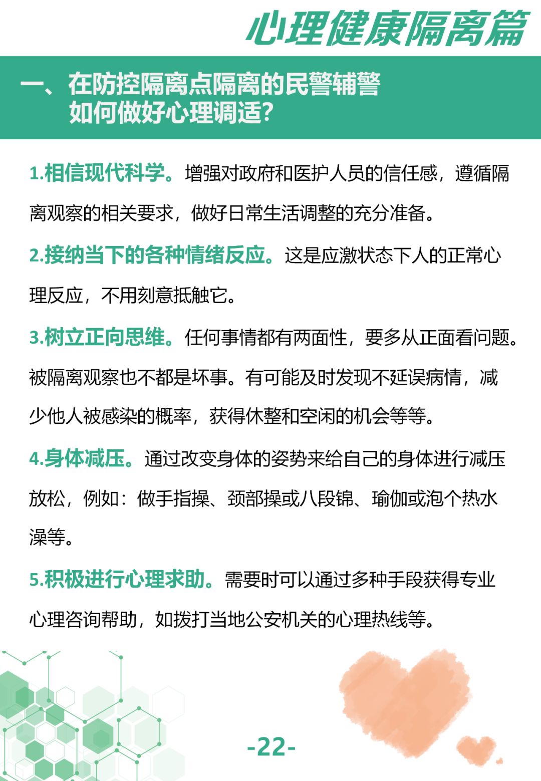 為堅(jiān)決貫徹落實(shí)趙克志部長(zhǎng)關(guān)于切實(shí)加強(qiáng)民警輔警自身防護(hù)工作,強(qiáng)化心理疏導(dǎo)的批示精神,堅(jiān)決打贏新冠肺炎疫情防控阻擊戰(zhàn),公安部應(yīng)對(duì)新型冠狀病毒感染肺炎疫情工作領(lǐng)導(dǎo)小組新聞宣傳組在前期下發(fā)《公安民警疫情應(yīng)對(duì)身心健康手冊(cè)》、《公安民警輔警疫情應(yīng)對(duì)身心健康手冊(cè)二》的基礎(chǔ)上:
