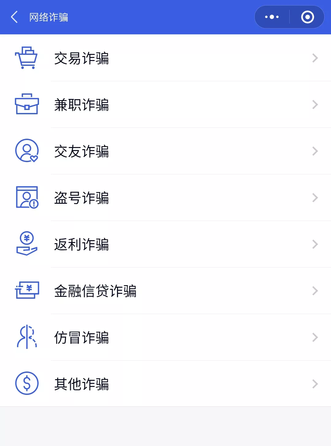 第五步:選擇你要舉報的網(wǎng)絡(luò)詐騙類型