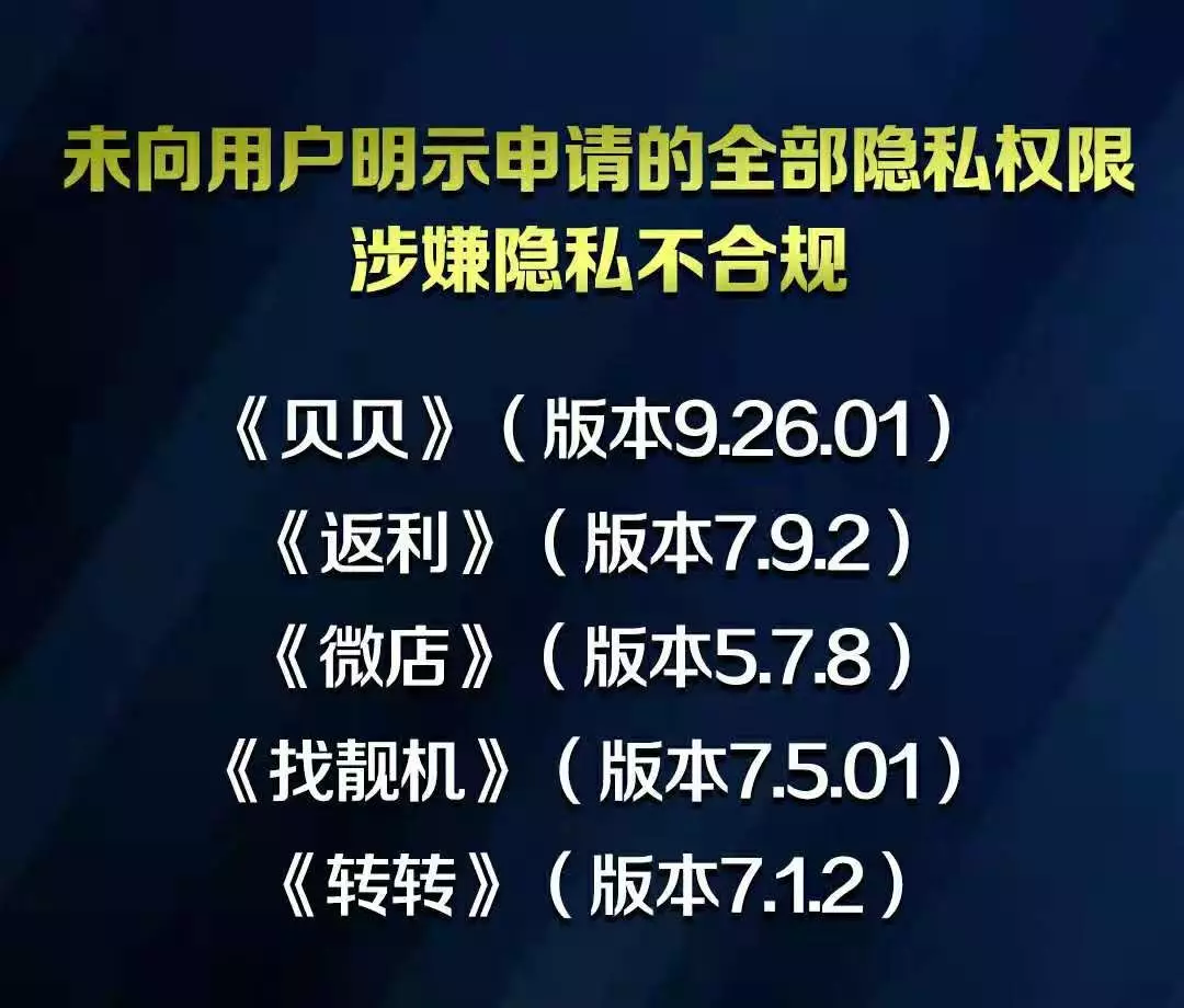 部分App則存在未向用戶明示申請(qǐng)的全部隱私權(quán)限,涉嫌隱私不合規(guī),具體App包括: