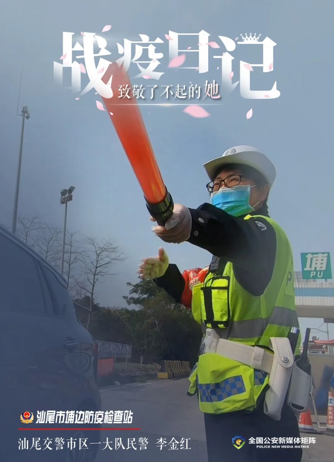 “我請(qǐng)戰(zhàn),我是共產(chǎn)黨員,我保證完成任務(wù)!”疫情當(dāng)前,主動(dòng)請(qǐng)戰(zhàn),這個(gè)最強(qiáng)聲音發(fā)自軍人出身的女民警、老黨員李金紅。疫情面前,汕尾市公安局交警支隊(duì)市區(qū)一大隊(duì)二級(jí)警長(zhǎng)李金紅用實(shí)際行動(dòng)踐行了共產(chǎn)黨員的初心和使命,成為汕尾公安抗擊新冠肺炎疫情的一面“三八”旗幟。