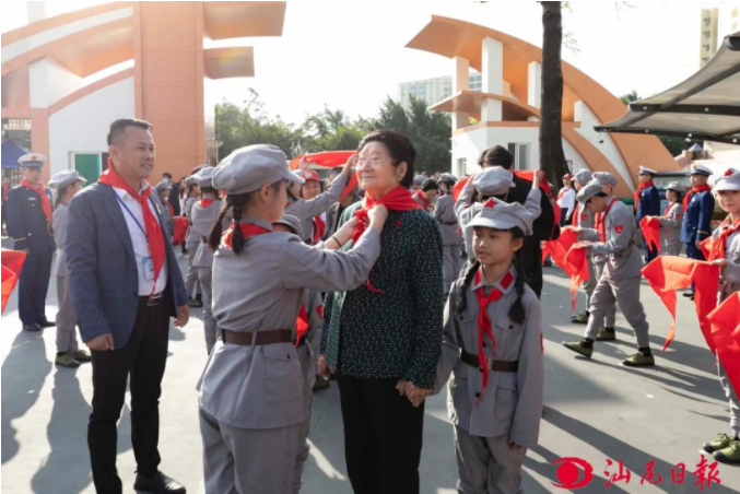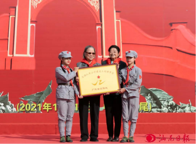 顧秀蓮為彭湃紅軍小學(xué)授習(xí)近平總書(shū)記對(duì)紅軍小學(xué)重要指示題詞牌和校旗、校牌,為海豐革命烈士暨革命斗爭(zhēng)史紀(jì)念館授“全國(guó)紅軍小學(xué)建設(shè)工程愛(ài)國(guó)主義教育基地”牌,為全國(guó)紅軍小學(xué)建設(shè)工程理事會(huì)廣東省工作處授牌,并為“傳承紅色基因,賡續(xù)紅色血脈”先進(jìn)個(gè)人、全國(guó)紅軍小學(xué)建設(shè)工程貢獻(xiàn)單位頒獎(jiǎng)。方強(qiáng)宣布成立“中國(guó)工農(nóng)紅軍彭湃紅軍小學(xué)”的決定并帶領(lǐng)彭湃紅軍小學(xué)學(xué)生宣誓。方強(qiáng)、趙化平、李實(shí)平,市領(lǐng)導(dǎo)逯峰、馬廣馳和海豐縣黨委主要負(fù)責(zé)人向彭湃紅軍小學(xué)贈(zèng)送“習(xí)近平總書(shū)記和少先隊(duì)員在一起”的掛像,并轉(zhuǎn)贈(zèng)曾飄揚(yáng)在天安門(mén)廣場(chǎng)的國(guó)旗。省消防救援總隊(duì)有關(guān)領(lǐng)導(dǎo)向彭湃紅軍小學(xué)傳遞“火焰藍(lán)牽手紅軍娃”的“火焰藍(lán)中隊(duì)”隊(duì)旗。