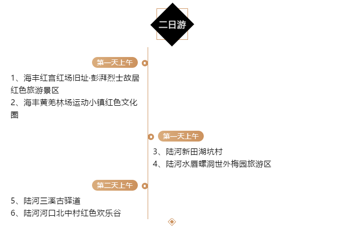 ⊙陸河北中村紅色歡樂谷:參觀白馬交通站,了解當年革命同志的艱苦斗爭歷程,看廣東首個以“不忘初心”為主題的公園,在河口革命歷史展館中聆聽革命故事。