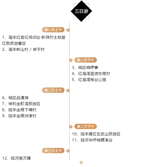 ⊙海豐新山村:游省級紅色黨建示范村,看今日紅色革命村莊新貌,感恩當年先輩所付出的努力與犧牲,在新山村午餐,體驗鄉(xiāng)村旅游農(nóng)家樂。