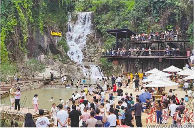 日前,在汕尾陸河?xùn)|坑鎮(zhèn)竹園村山口自然村,一處廢棄舊石場(chǎng)成功轉(zhuǎn)型為網(wǎng)紅打卡點(diǎn),浮日瀑布咖啡吸引了大量游客前來游玩,成為東坑鎮(zhèn)農(nóng)文旅融合發(fā)展的又一亮點(diǎn)。