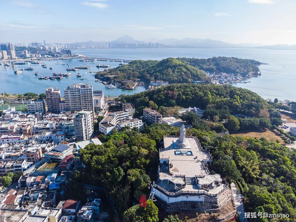 鳳山媽祖石像建于一九九四年,是中國大陸目前最大型的媽祖藝術石雕像之一,也是汕尾港的標志。石像旁還有著名文學家冰心先生親題的“天后圣母”四個字。