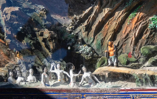 這里竟然還有一處豬八戒偷看七仙女洗澡的泥塑。七位仙女神態(tài)各異,還能看出驚慌的表情,岸上的豬八戒也是非常寫實了。但是為什么媽祖廟里會有這樣的雕像呢?你們也來猜猜看吧哈哈哈哈哈哈。