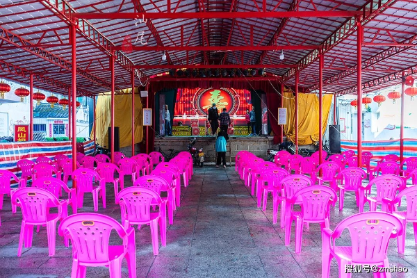 祖廟對面還有一個戲臺,此刻臺上正擺著桌席,等待一場跟祝壽有關的大戲,戲臺上的壽字正紅耀眼。