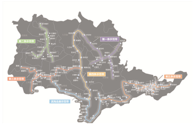據(jù)該市鄉(xiāng)村振興美麗景觀示范帶建設(shè)工作領(lǐng)導(dǎo)小組辦公室負責(zé)人介紹,該市建設(shè)五條鄉(xiāng)村振興美麗景觀示范帶,注重做好規(guī)劃、建設(shè)、經(jīng)營、治理“四篇文章”,專門明確了建設(shè)工作的七大原則,即“堅持生態(tài)優(yōu)先、綠色發(fā)展原則;堅持三農(nóng)結(jié)合、三生融合原則;堅持以人為本、發(fā)動群眾原則;堅持因地制宜、突出特色原則;堅持比學(xué)趕超、賽龍奪錦原則;堅持結(jié)果導(dǎo)向、資源傾斜原則;堅持優(yōu)化資源、提升成效原則。以及明確了“建設(shè)美麗農(nóng)居并形成農(nóng)房風(fēng)貌帶;全線建成美麗宜居村;打造一批3A級景區(qū)村莊;建設(shè)美麗通道;打造美麗田園;打造產(chǎn)業(yè)體驗節(jié)點;建設(shè)民宿等鄉(xiāng)村旅游配套設(shè)施;打造治理有效、鄉(xiāng)風(fēng)文明的典型鄉(xiāng)村;打造農(nóng)村電商典型帶、數(shù)字鄉(xiāng)村試點”等12項具體工作任務(wù)。