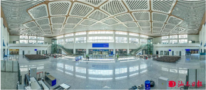 汕尾新建站及高鐵樞紐一體化建設(shè)工程進(jìn)入收尾階段。圖為陸豐東站站房內(nèi)景。