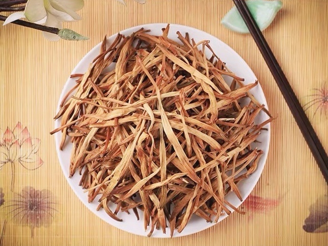 黃花菜曬干后變成金黃色的針狀物