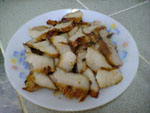 材料:豬頸肉半磅,蒜頭一只拍碎,,生抽,酒各一茶匙,老抽,鹽各半茶匙