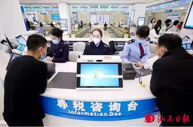 圖為汕尾市政務(wù)服務(wù)中心的導(dǎo)稅咨詢臺(tái)工作人員為企業(yè)、群眾答疑解惑。