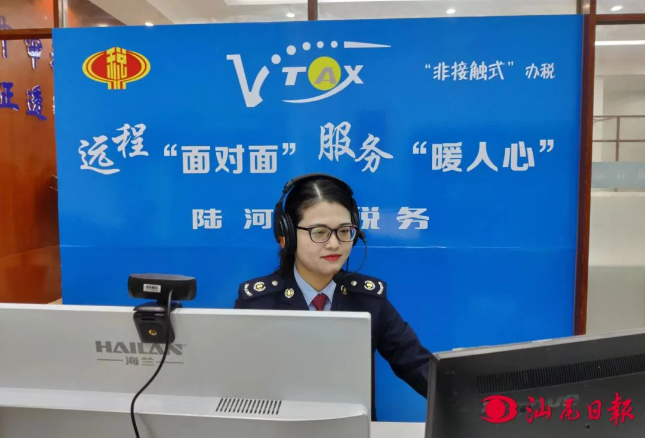 圖為國(guó)家稅務(wù)總局陸河縣稅務(wù)局工作人員正在線上進(jìn)行遠(yuǎn)程服務(wù)。