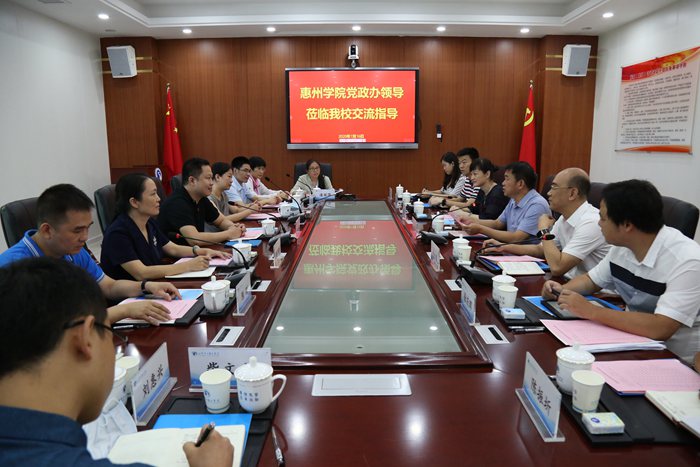 7月16日上午,惠州學(xué)院黨政辦主任溫智一行蒞臨我校交流指導(dǎo)。學(xué)校黨委副書(shū)記、紀(jì)委書(shū)記、工會(huì)主席吳方暉熱情接待了來(lái)訪客人并參加座談交流。辦公室全體成員參加座談。