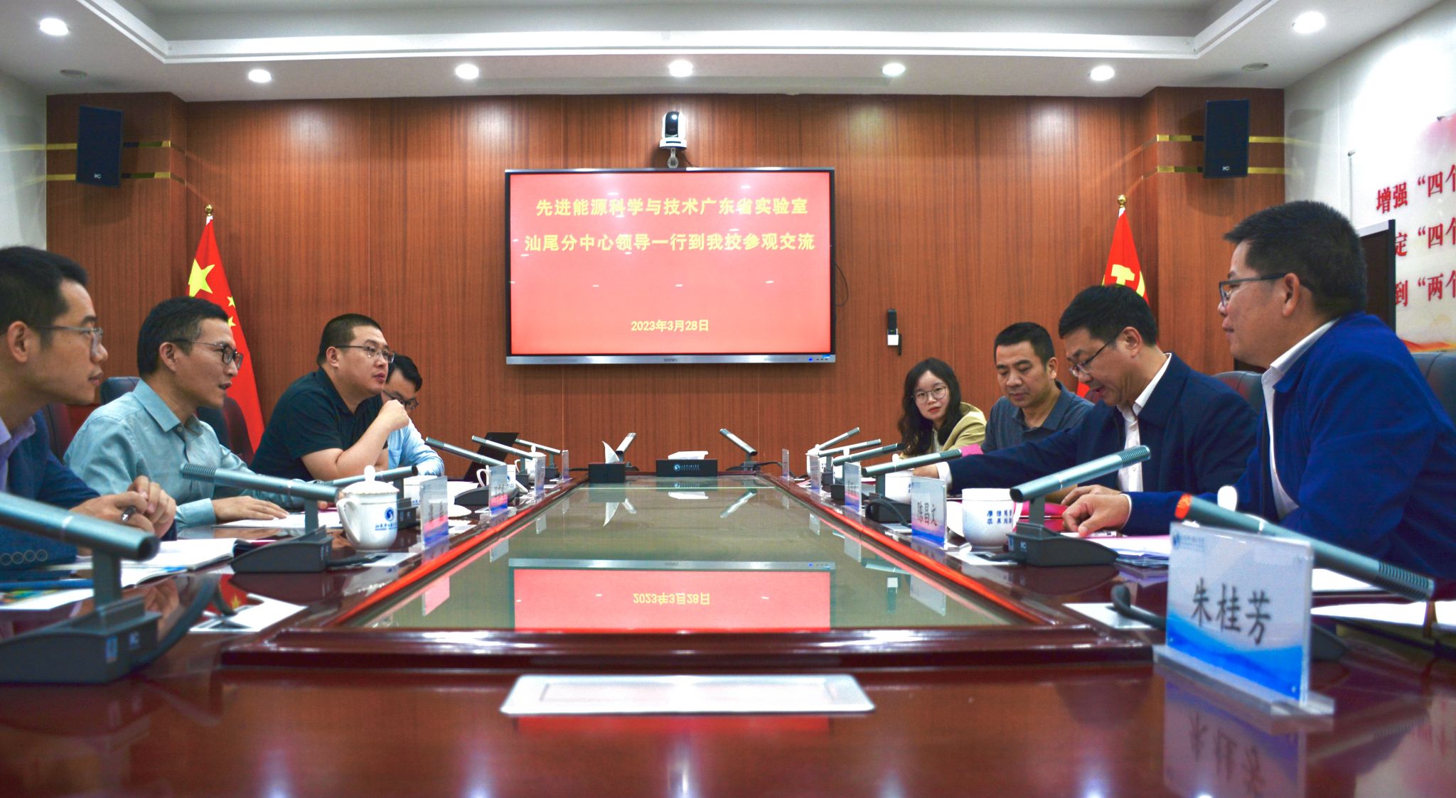 3月28日下午,先進(jìn)能源科學(xué)與技術(shù)廣東省實(shí)驗(yàn)室汕尾分中心馮茹鳴常務(wù)副主任一行4人到我校參觀交流,我校校長(zhǎng)蔡昭權(quán)熱情接待來(lái)訪客人,并在科學(xué)樓三樓會(huì)議室舉行座談交流。教務(wù)處、科研處、海洋學(xué)院相關(guān)負(fù)責(zé)人,海洋學(xué)院相關(guān)教師參加座談會(huì)。