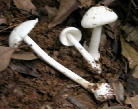 在廣東地區(qū),導(dǎo)致中毒人數(shù)最多的兩種蘑菇分別是白毒傘(致命鵝膏)和鉛綠褶菇,其中白毒傘又是毒性最強(qiáng)的。白毒傘的白色菌體幼時卵形,后菌蓋展開成傘狀。常在黧蒴樹樹陰下群生或散生,分布在廣州、清遠(yuǎn)、肇慶等地,大量生長于春季溫暖多雨的3~4月,5~7月也少量出現(xiàn)。