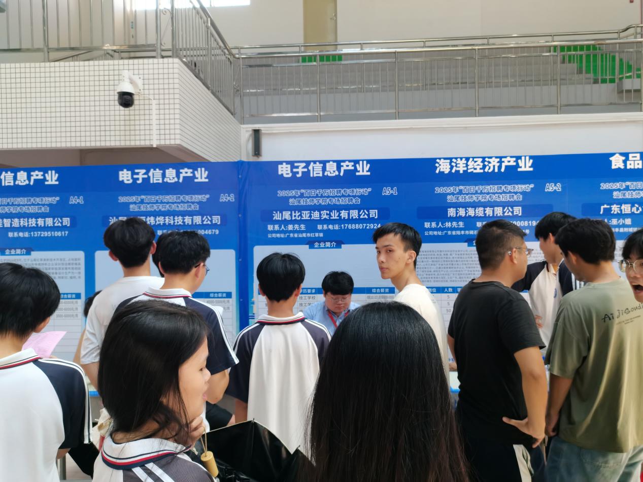 校園招聘會累計126家企業(yè)參與,包括信利半導(dǎo)體、汕尾比亞迪、南海海纜等重點優(yōu)質(zhì)企業(yè),涵蓋電子信息、智能制造、教育服務(wù)等領(lǐng)域,提供近4000個崗位。現(xiàn)場分設(shè)電子信息、酒店服務(wù)、教育等行業(yè)招聘專區(qū),匹配區(qū)域產(chǎn)業(yè)集群與人才需求,促進產(chǎn)才融合。