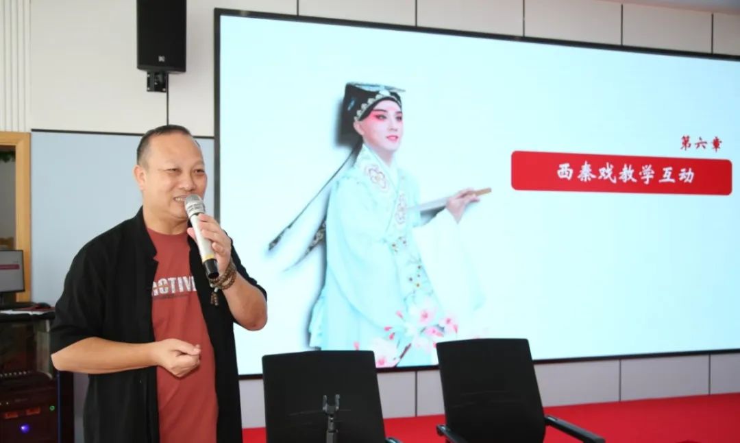 講座上,呂老師以其深厚的藝術(shù)底蘊和豐富的表演經(jīng)驗,深入淺出地講解了海陸豐戲劇活動情況、戲曲表演的舞臺特征、西秦戲的歷史淵源以及藝術(shù)特點。在教學互動環(huán)節(jié),呂老師親自示范表演、邀請學員上臺交流互動,讓藝友們近距離感受到了西秦戲獨特的唱腔和表演形式。講座現(xiàn)場,大家聽得津津有味,紛紛表示受益匪淺,不僅領(lǐng)略了傳統(tǒng)藝術(shù)的博大精深,更對非遺文化有了更深入的了解。