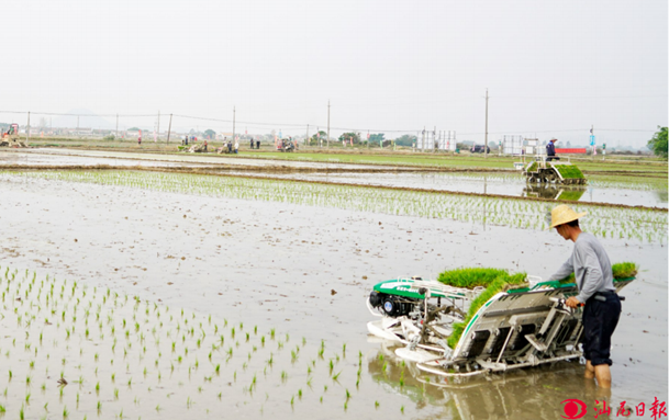 現(xiàn)代化農(nóng)用機(jī)械助力春耕,大大提高插秧效率。