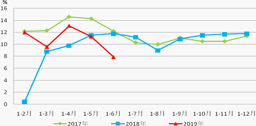 圖2 2017年-2019年上半年汕尾固定資產(chǎn)投資增速曲線圖