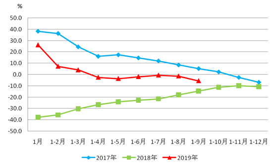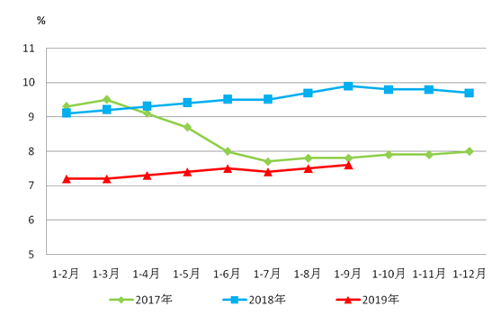 圖1 2017-2019年前三季度汕尾規(guī)模以上工業(yè)增加值增速曲線圖