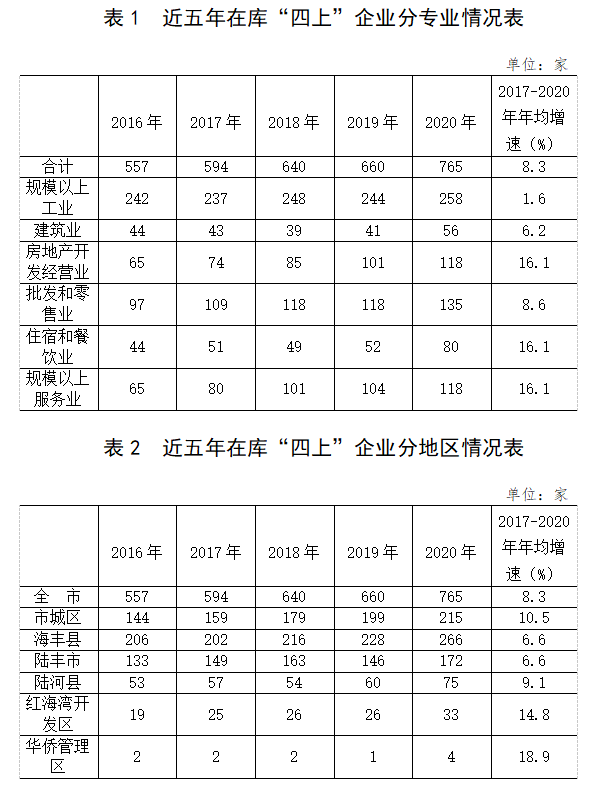 2020年年報(bào)顯示,全市在庫(kù)“四上”企業(yè)765家,比上年凈增105家,同比增長(zhǎng)15.9%,增幅同比提高12.8個(gè)百分點(diǎn)。