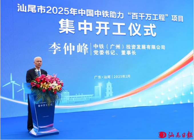 2月25日,汕尾市2025年中國中鐵助力“百千萬工程”項目集中開工儀式舉行。市委書記、市人大常委會主任逯峰出席儀式并宣布項目開工,中鐵(廣州)投資發(fā)展有限公司黨委書記、董事長李仲峰致辭,市委副書記、市長鄭海濤主持儀式,市政協(xié)黨組書記曾曉暉、市委副書記林少文出席儀式。