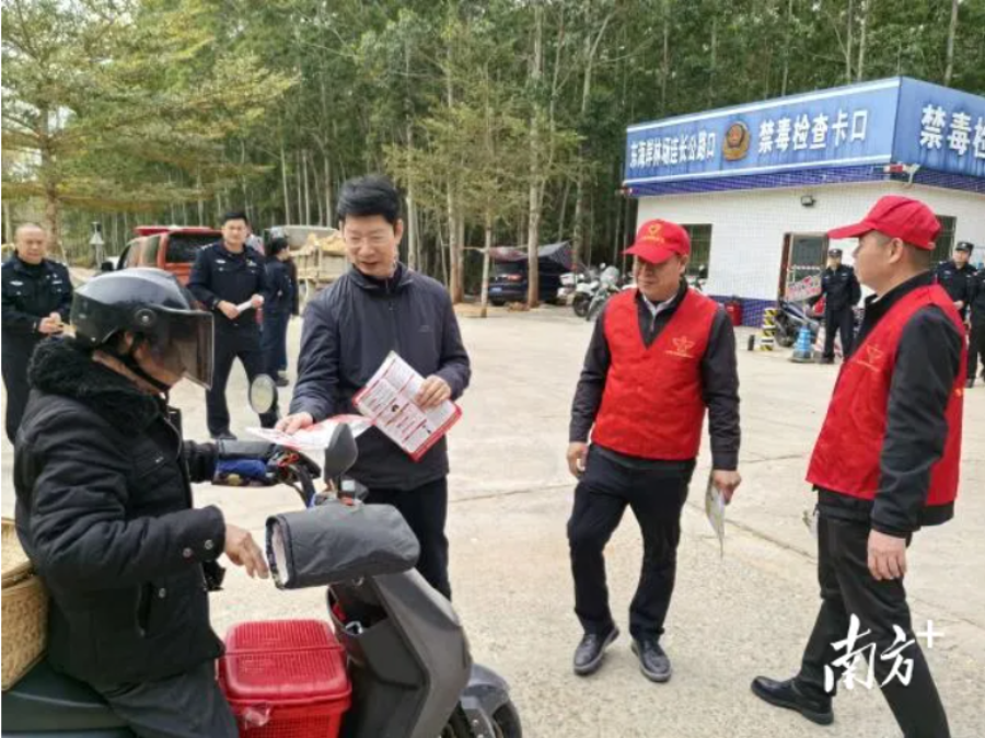 會后,駐場禁毒工作組組長馮宇生帶隊掛職民警、林場干部職工、禁毒志愿者、治安巡邏隊聯(lián)合東海岸派出所一行到禁毒卡口、林區(qū)廟宇等重點(diǎn)場所,開展禁毒宣傳及排查工作。