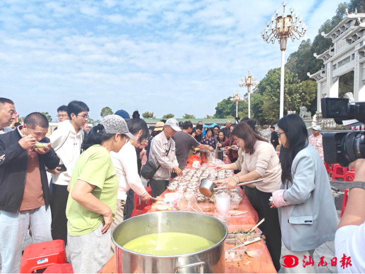游客們?cè)谄穱L汕尾特色小吃——菜茶。