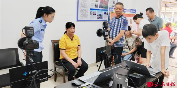 圖為現(xiàn)場工作人員為換證居民進(jìn)行照片采集。