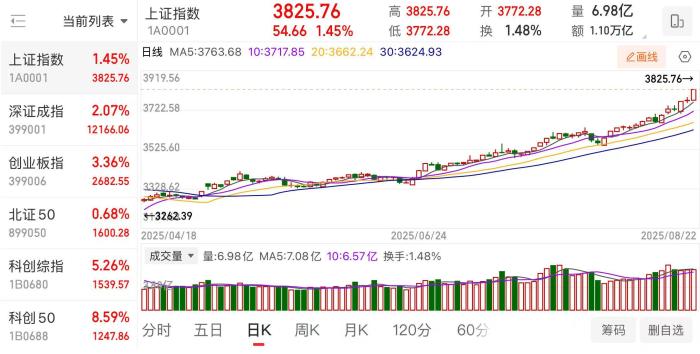 8月22日,A股上漲,滬指突破3800點(diǎn),再創(chuàng)10年新高。