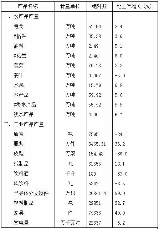 注:工業(yè)產(chǎn)品產(chǎn)量統(tǒng)計(jì)范圍是全部國有工業(yè)及年銷售收入500萬元及以上非國有工業(yè)。