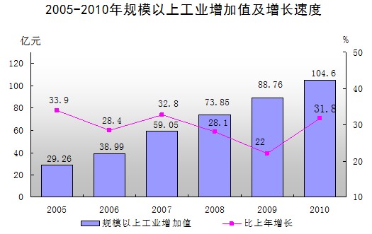 全年完成全社會(huì)工業(yè)增加值186.56億元,增長(zhǎng)25.3%。規(guī)模以上工業(yè)增加值104.64億元,同比增長(zhǎng)31.8%,按經(jīng)濟(jì)類型分,國(guó)有企業(yè)增長(zhǎng)16.8%,集體企業(yè)增長(zhǎng)21.3%,股份制企業(yè)增長(zhǎng)34.6%,外商及港澳臺(tái)投資企業(yè)增長(zhǎng)29.3%。實(shí)現(xiàn)規(guī)模以上工業(yè)銷售產(chǎn)值310.51億元,增長(zhǎng)27.6%;其中工業(yè)產(chǎn)品出口交貨值135.39億元,增長(zhǎng)14.3%,占銷售產(chǎn)值的43.6%。