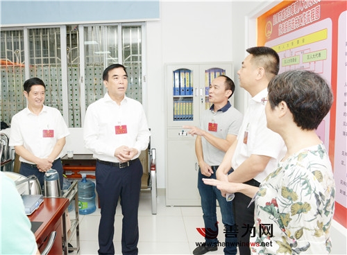 石奇珠(左二)等市領(lǐng)導(dǎo)在城區(qū)紅草鎮(zhèn)人大代表聯(lián)絡(luò)站了解情況