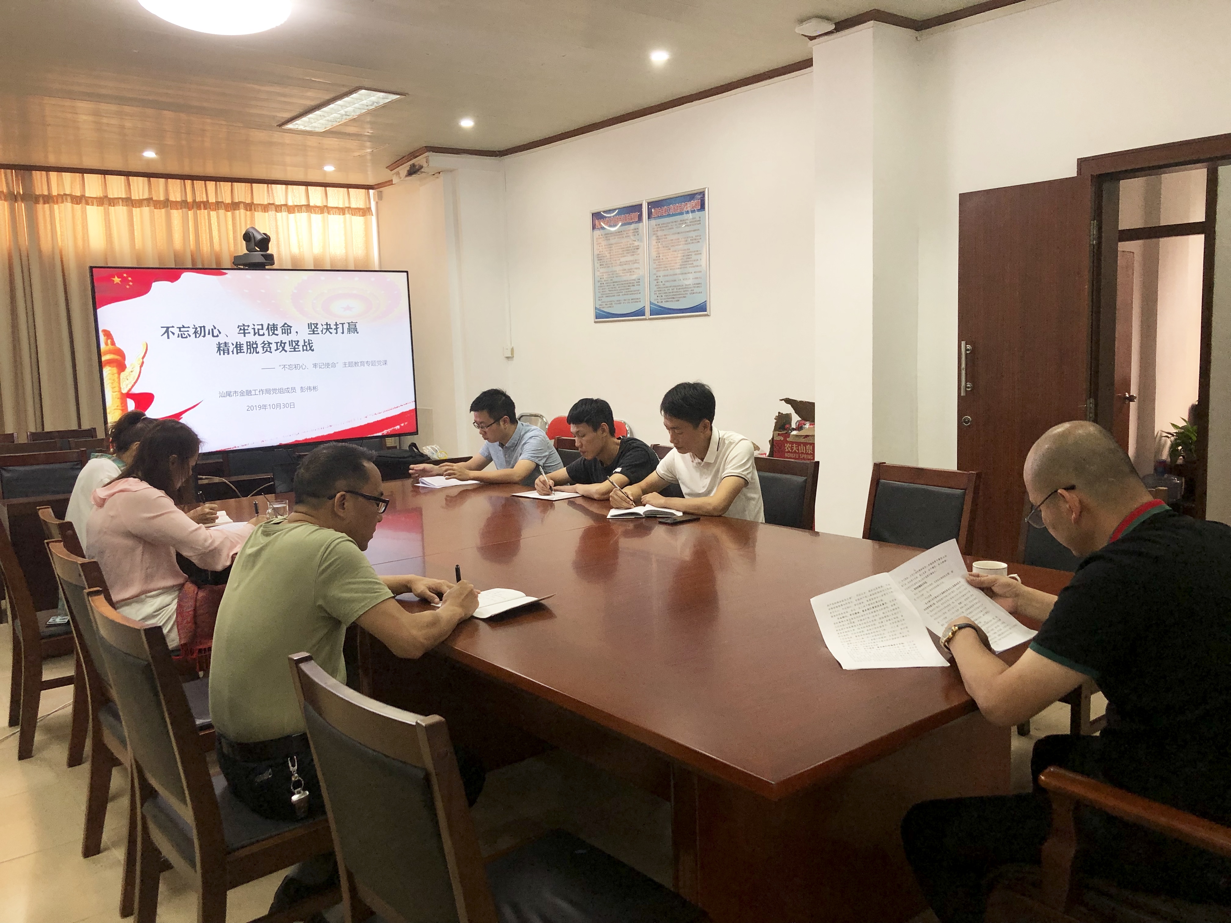 2019年10月30日,根據(jù)汕尾市委“不忘初心、牢記使命”主題教育要求和局主題教安排,汕尾市金融工作局在局會(huì)議室舉辦“不忘初心、牢記使命”主題教育專(zhuān)題黨課,局黨組成員彭偉彬給分管科室黨員干部作題為“不忘初心、牢記使命,堅(jiān)決打贏精準(zhǔn)脫貧攻堅(jiān)戰(zhàn)”的專(zhuān)題黨課。