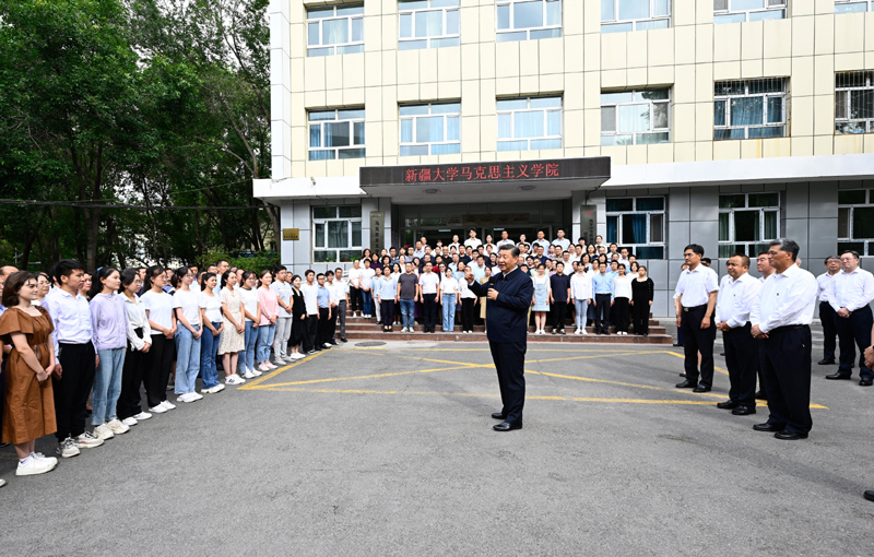 7月12日至15日,習近平在新疆維吾爾自治區(qū)黨委書記馬興瑞、自治區(qū)政府主席艾爾肯·吐尼亞孜陪同下,先后來到烏魯木齊、石河子、吐魯番等地,深入學校、國際陸港區(qū)、社區(qū)、博物館、農(nóng)村和新疆生產(chǎn)建設兵團等進行調(diào)研。