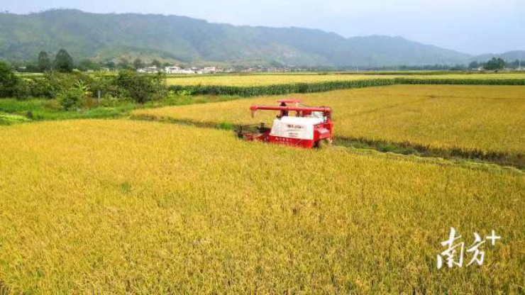 汕尾晚稻收割。