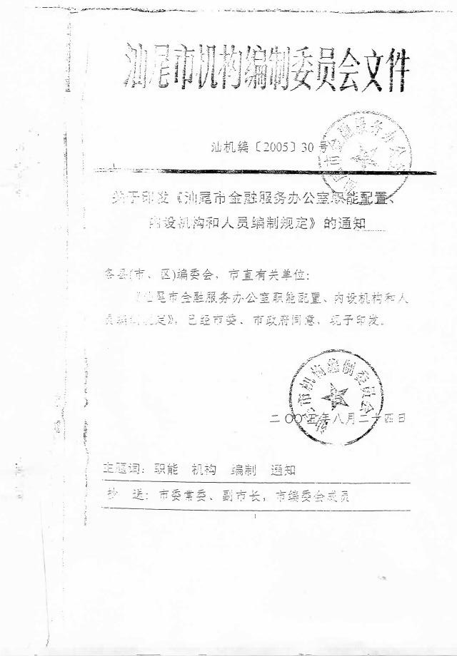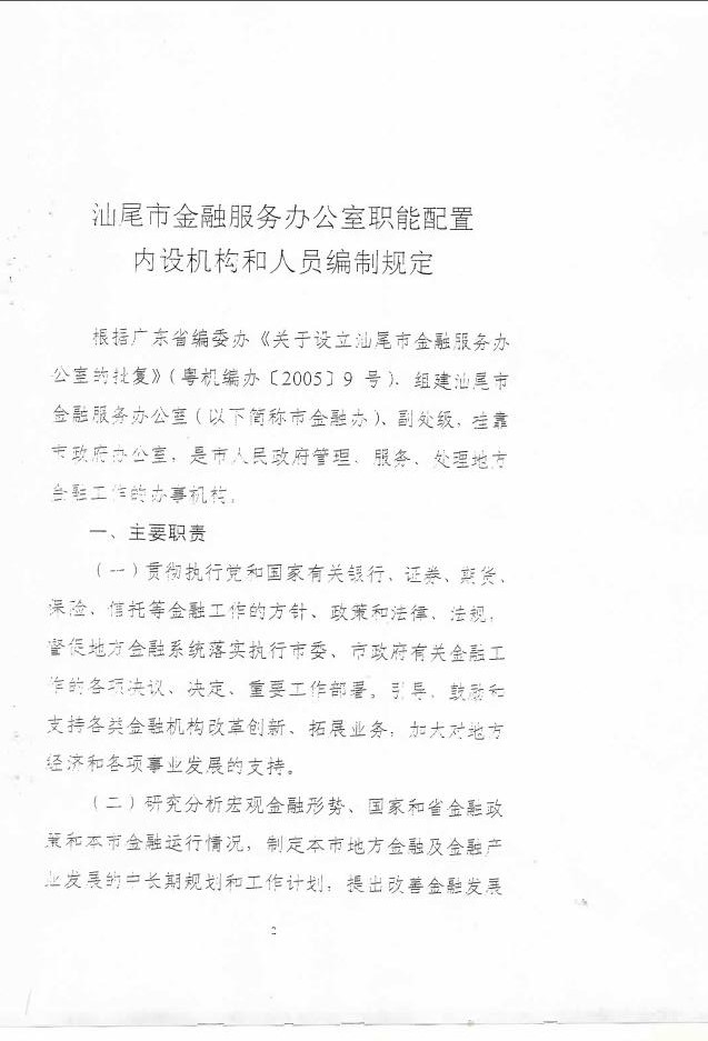 關(guān)于印發(fā)《汕尾市金融服務(wù)辦公室職能配置、內(nèi)設(shè)機(jī)構(gòu)和人員編制規(guī)定》的通知