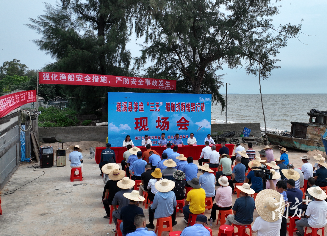 同日下午,湛江市遂溪縣政府在草潭港碼頭召開涉漁“三無”船舶集中拆解現(xiàn)場會暨鄉(xiāng)鎮(zhèn)船舶清查整治工作推進會。