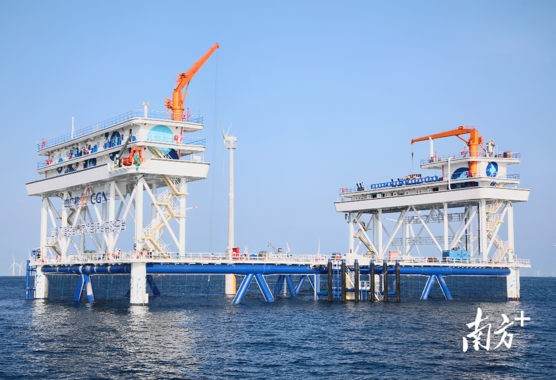 全球單體最大抗臺型風(fēng)漁融合網(wǎng)箱平臺——中廣核“伏羲一號”位于汕尾中廣核后湖50萬千瓦海上風(fēng)電場中心場區(qū),距離汕尾海岸約11公里,由網(wǎng)箱主體結(jié)構(gòu)和上建平臺兩部分組成。