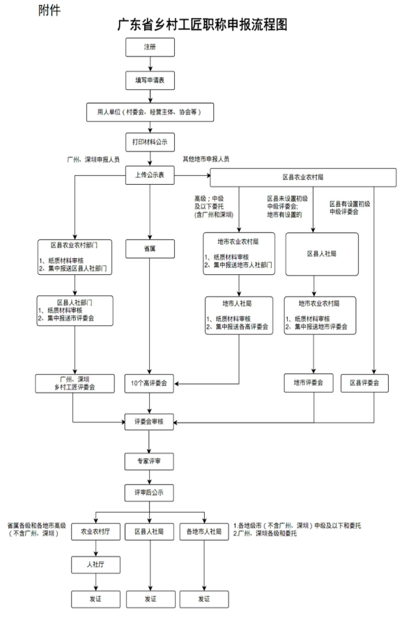 鄉(xiāng)村工匠其他專業(yè)中級(jí)及以下職稱評(píng)審可委托對(duì)應(yīng)專業(yè)的廣東省鄉(xiāng)村工匠高級(jí)職稱評(píng)審委員會(huì)進(jìn)行評(píng)審,紙質(zhì)材料經(jīng)農(nóng)業(yè)農(nóng)村部門、人力資源和社會(huì)保障部門審核后報(bào)送相對(duì)應(yīng)專業(yè)的廣東省鄉(xiāng)村工匠高級(jí)職稱評(píng)審委員會(huì)。