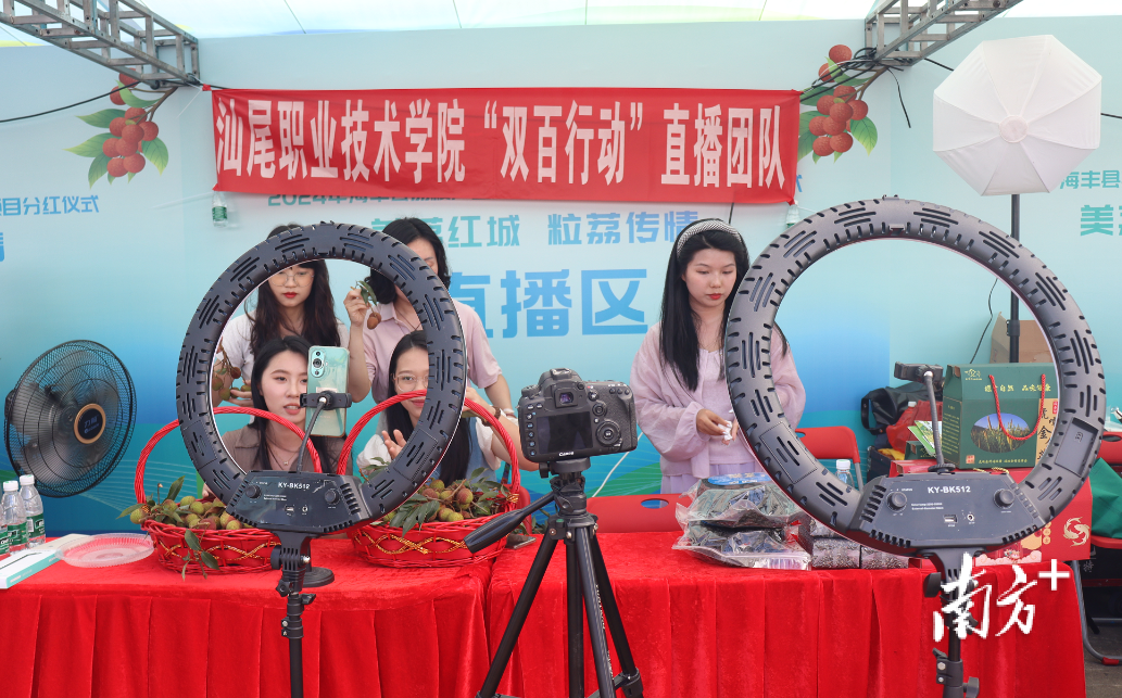 汕尾職業(yè)技術(shù)學(xué)院“雙百行動”直播團隊現(xiàn)場直播。 南方+記者 郭楊陽 拍攝
