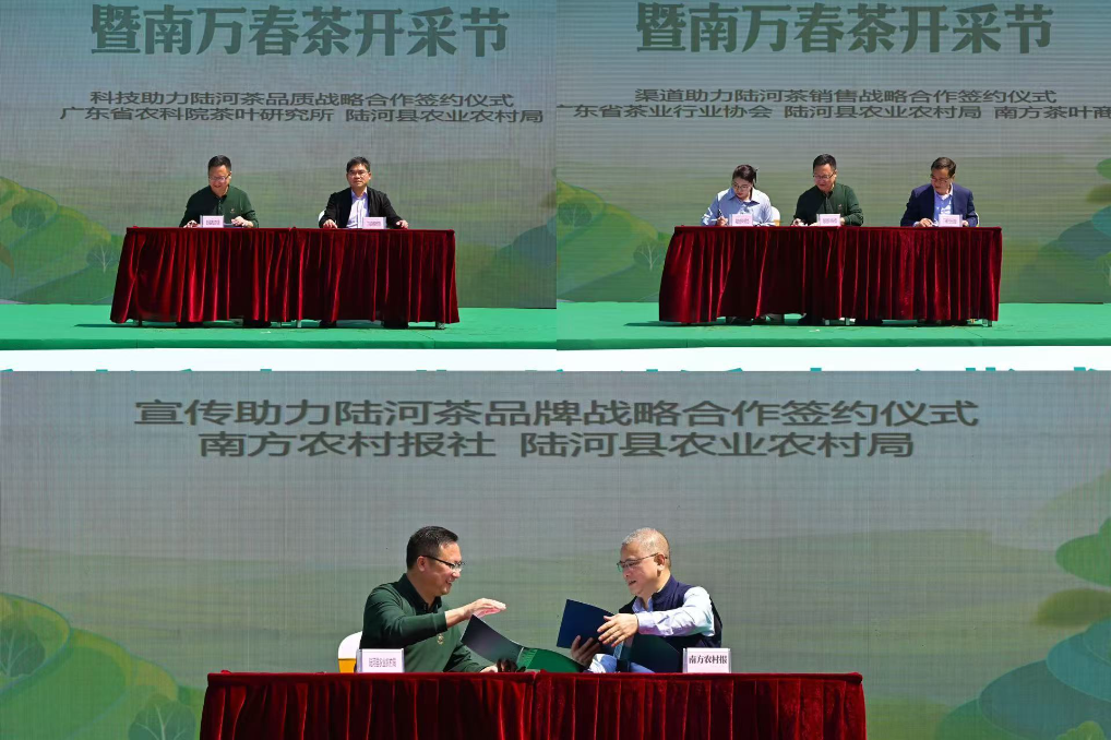 活動(dòng)現(xiàn)場,省茶葉研究所、南方農(nóng)村報(bào)社、省茶業(yè)行業(yè)協(xié)會(huì)、南方茶葉商會(huì)分別與陸河縣農(nóng)業(yè)農(nóng)村局簽署戰(zhàn)略合作協(xié)議,各方將從科技賦能、品牌建設(shè)宣傳、拓展市場渠道等多個(gè)維度展開深度合作,共同助力陸河茶葉走向全國市場。