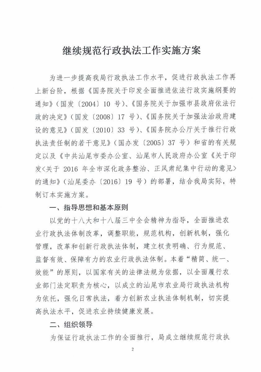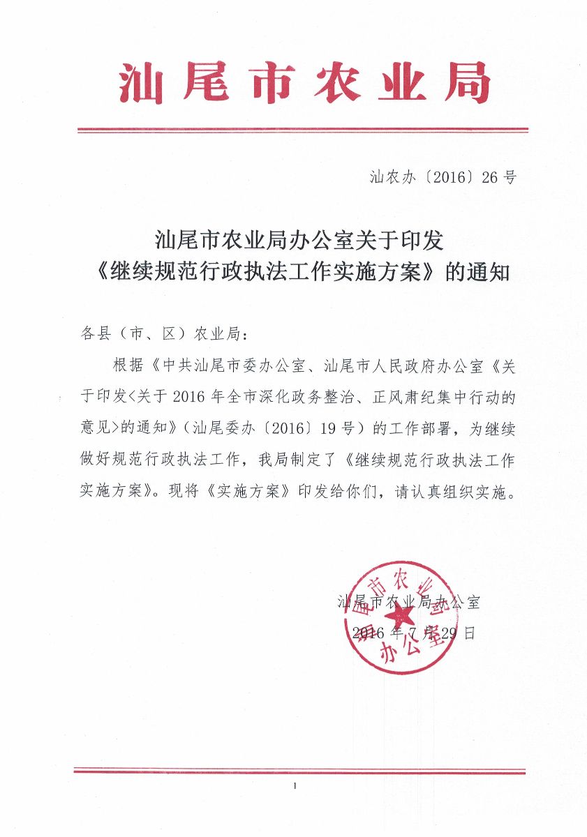 汕尾市農(nóng)業(yè)局辦公室關(guān)于印發(fā)《繼續(xù)規(guī)范行政執(zhí)法工作實(shí)施方案》的通知